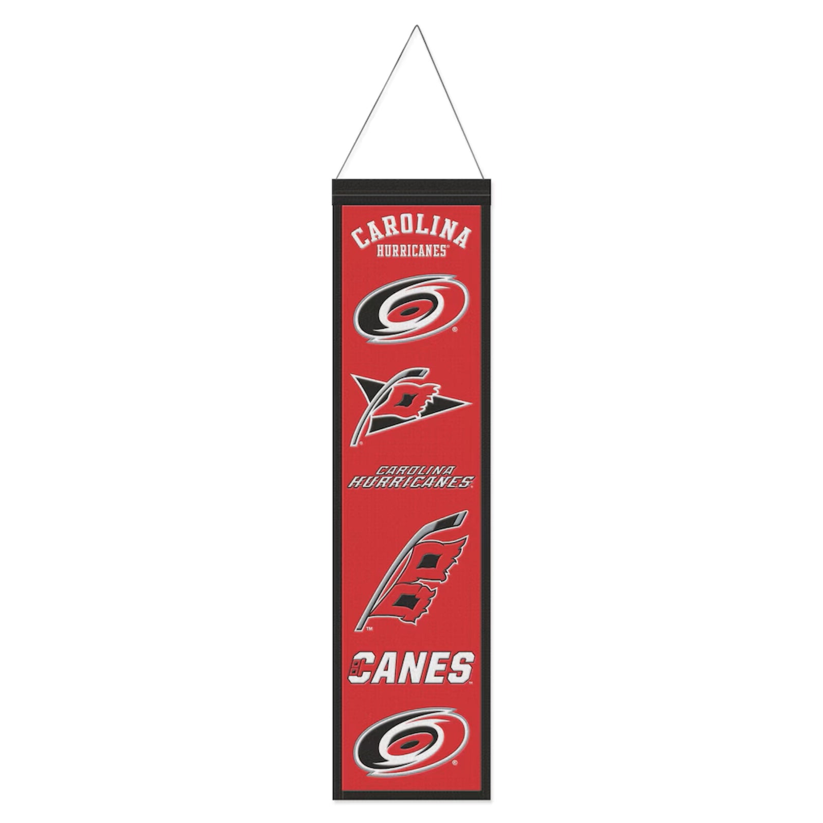 Every team has its own look, its own visual identity, and that often evolves over the years. Pay tribute to your favorite squad's unique logo with this Carolina Hurricanes Heritage Banner from Winning Streakª. It boasts a wool construction, includes a hanging cord, and depicts the many versions of the club's emblem.