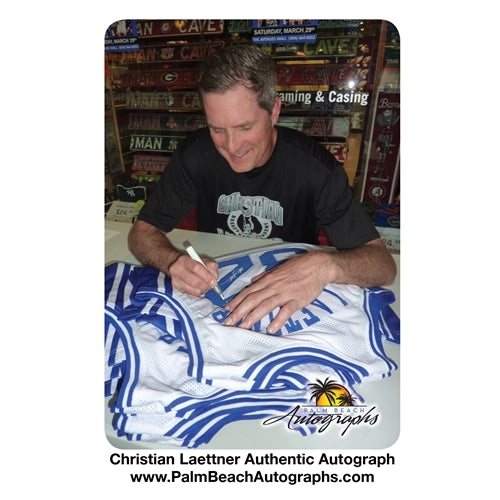This item was hand signed by Christian Laettner at our in-store public signing and is accompanied by a Certificate of Authenticity from Palm Beach Autographs and a proof photo from the signing. A tamper-evident hologram will be affixed to the item.