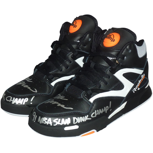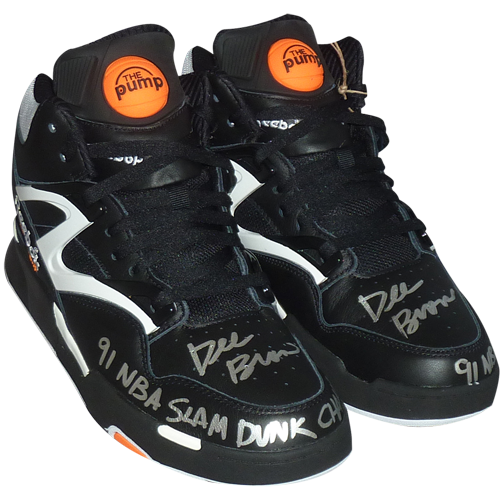 Dee Brown Autographed Pair of Reebok Pump Shoes w/ 91 NBA Slam Dunk Champ - Both Shoes Signed and Box Signed - JSA