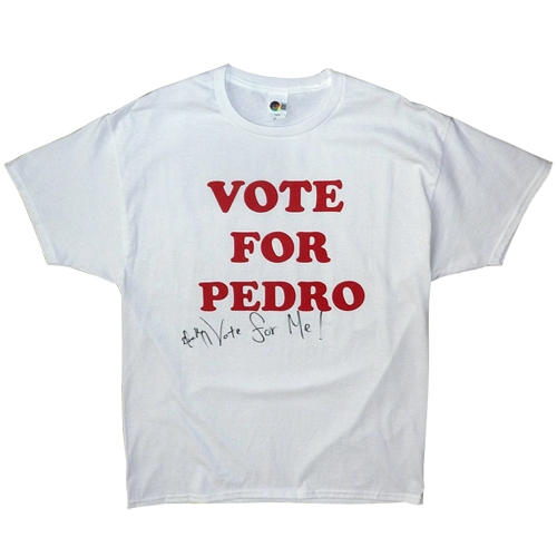 This VOTE FOR PEDRO T-Shirt was hand signed by actor Efren Ramirez at a private signing. He played Pedro in the cult classic Movie Napoleon Dynamite and added the inscription Vote for Me. It is accompanied by a Certificate of Authenticity from Palm Beach Autographs and Beckett. A tamper-evident hologram will be affixed to the item. Each signature is witnessed by a member of our staff or comes out of a private signing.