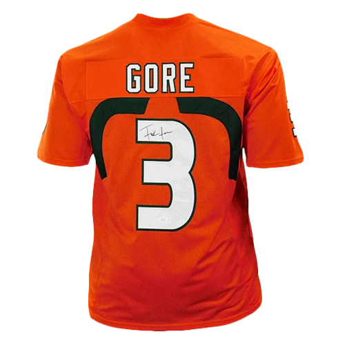 Own a piece of Hurricanes history with this incredible Frank Gore autographed custom jersey. Show your love for the team and one of its legendary players with this officially authenticated jersey from JSA. Perfect for any fan or collector, this jersey is a must-have for any Miami Hurricanes enthusiast. Don't miss out!