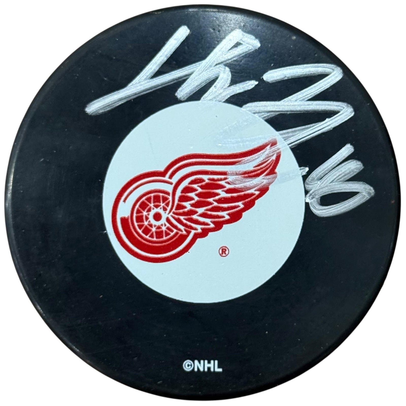 Henrik Zetterberg Autographed Detroit Red Wings Hockey Puck with Tall Case - JSA