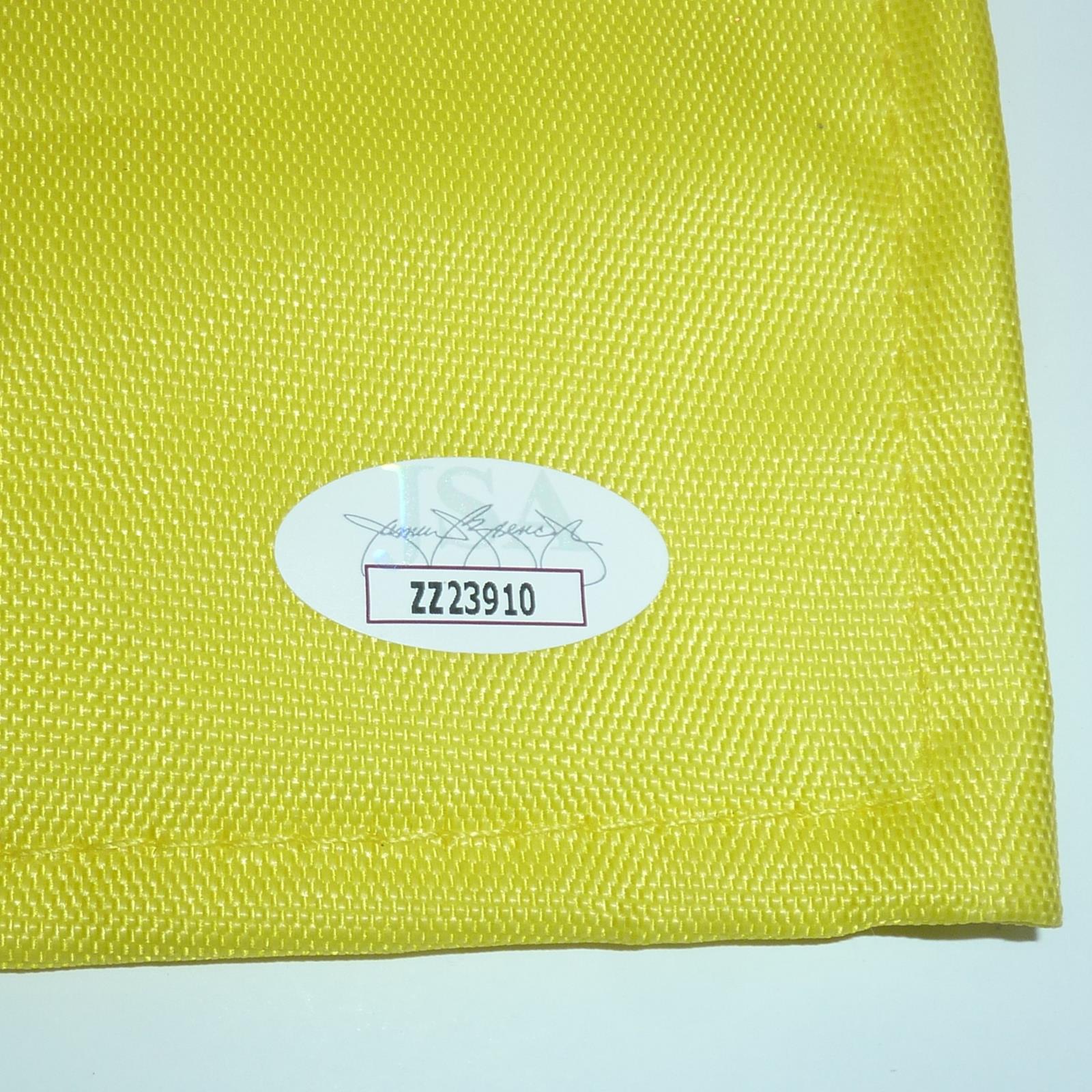 Experience the ultimate piece of golf memorabilia with this autographed Masters Golf Pin Flag featuring three legends: Jack Nicklaus, Arnold Palmer, and Gary Player. This flag comes with a JSA Full Letter of Authenticity, making it a must-have for any avid golfer or fan of these iconic players.
