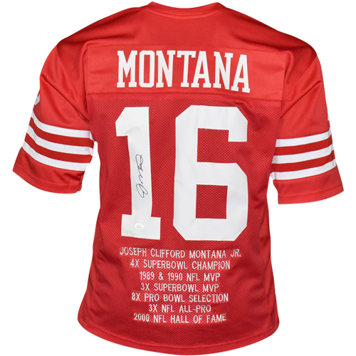 Joe Montana Autographed San Francisco (Red #16) Custom STAT Jersey - JSA
