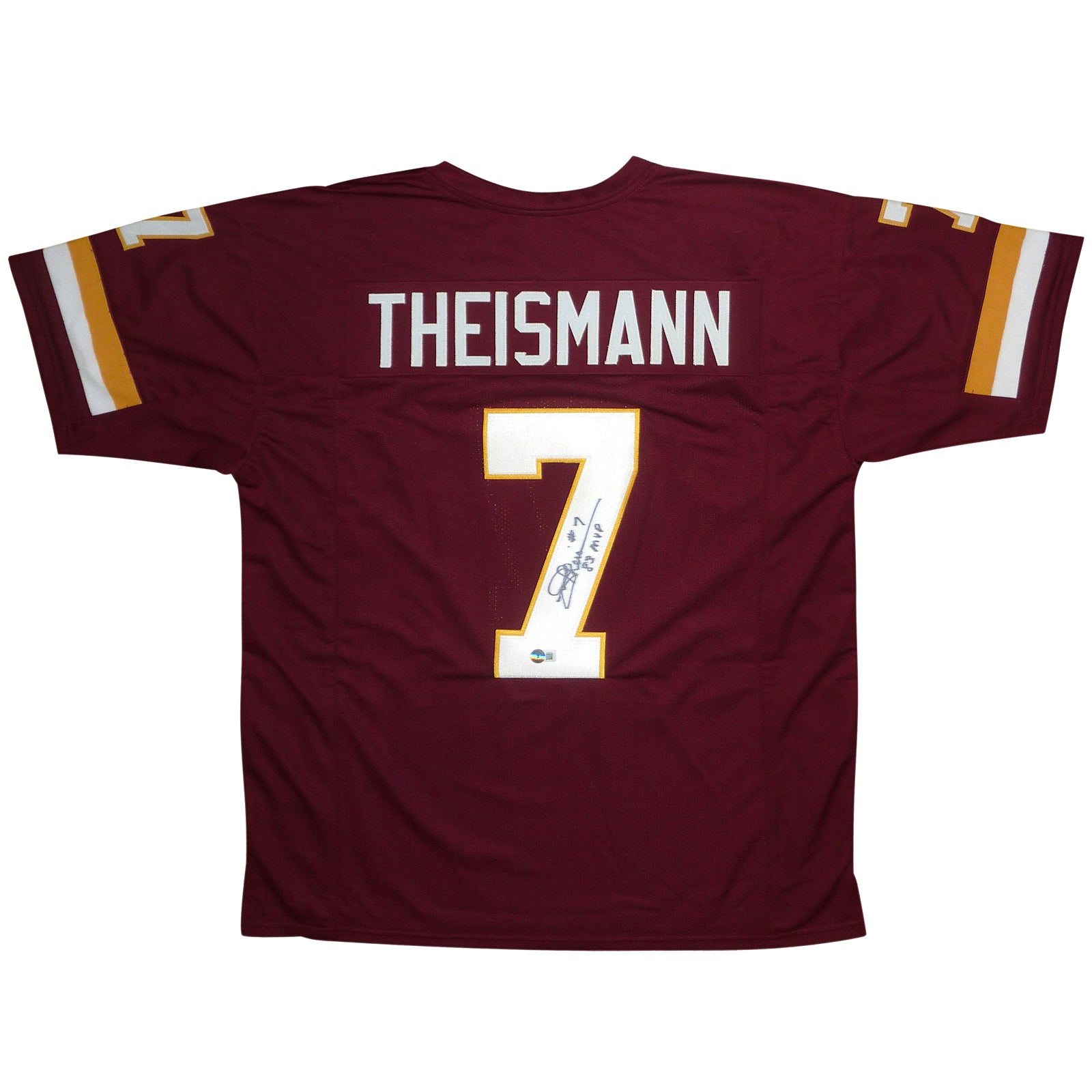 Show off your love for the Washington Football Team with this autographed Joe Theismann jersey! Featuring his iconic #7 in red along with a commemorative "83 MVP" inscription, this custom jersey is a must-have for any fan. Display it proudly or add it to your collection for a piece of team history.