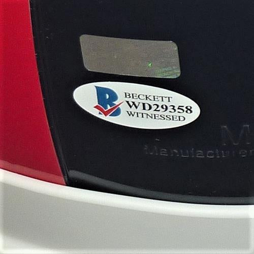 This full size New York Giants helmet was hand signed by Hall of Famer Lawrence Taylor at a private signing. It is accompanied by a Certificate of Authenticity from Palm Beach Autographs and Beckett. A tamper-evident hologram will be affixed to the item. Each signature is witnessed by a member of our staff or comes out of a private signing.