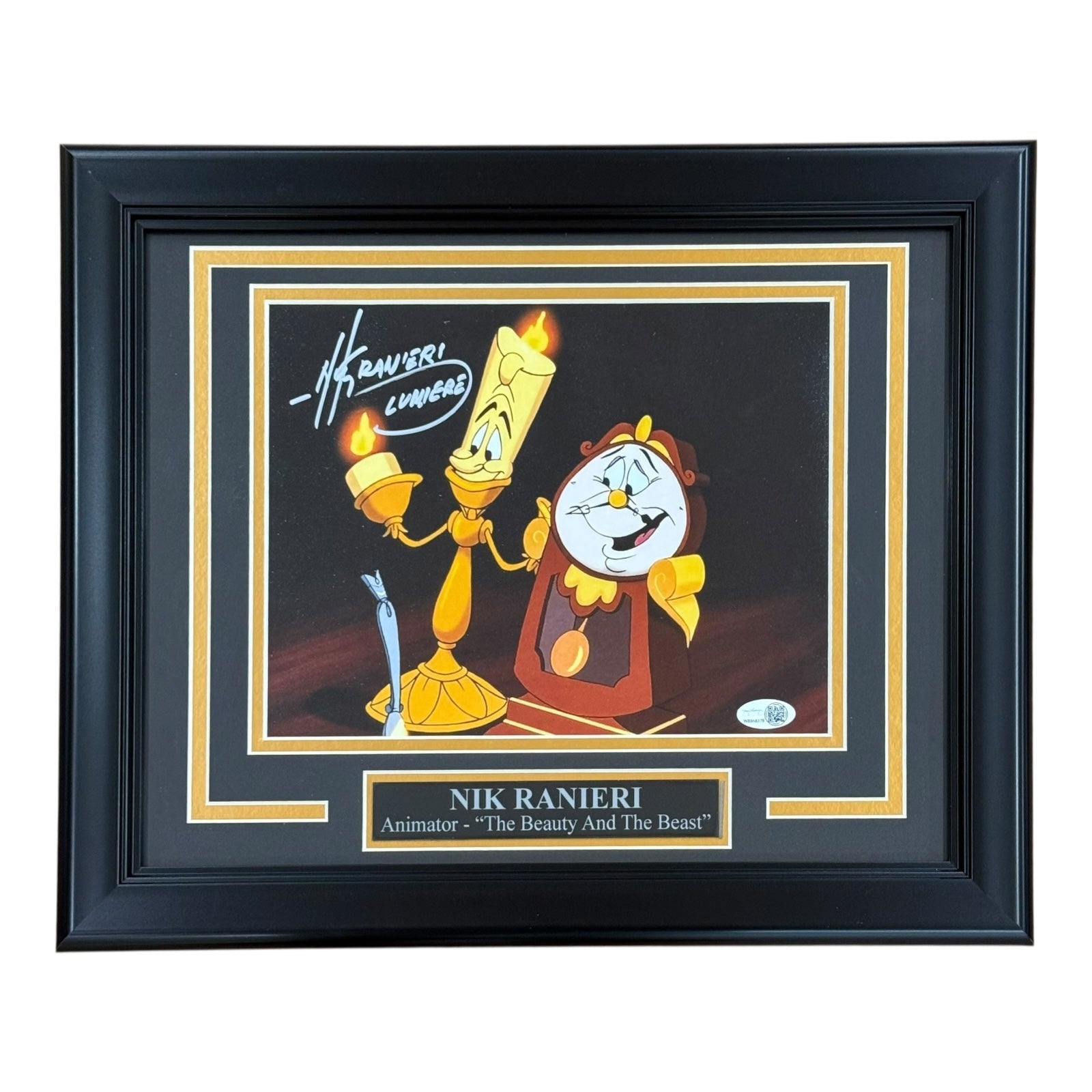 Own a piece of Movie history with this deluxe framed 8x10 photo featuring an authentic autograph by the Beauty and the Beast animator Nik Ranieri. Verified by JSA, this unique item will bring joy and inspiration to any fan's collection. Don't miss out!