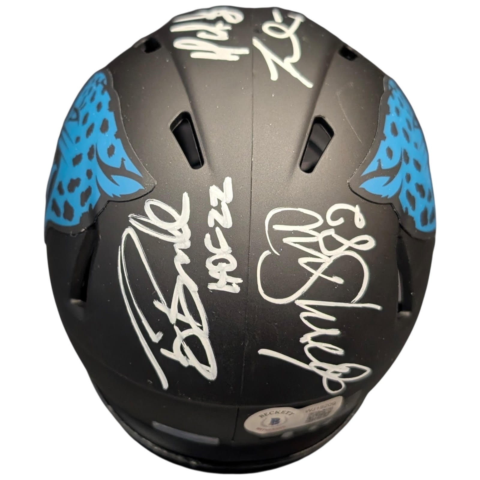 Own a piece of Jacksonville Jaguars history with this exclusive limited edition ECLIPSE mini helmet, personally signed by the legendary Pride of the Jaguars: Tony Boselli, Mark Brunell, Jimmy Smith, and Fred Taylor. Each signature represents a pivotal era of Jaguars football, making this a must-have collectible for devoted fans and serious autograph enthusiasts. Authenticated by JSA, this rare four-signature piece captures the essence of the franchise's most iconic players in one stunning display. Don't miss the opportunity to secure this exceptional limited edition memorabilia before it's gone.