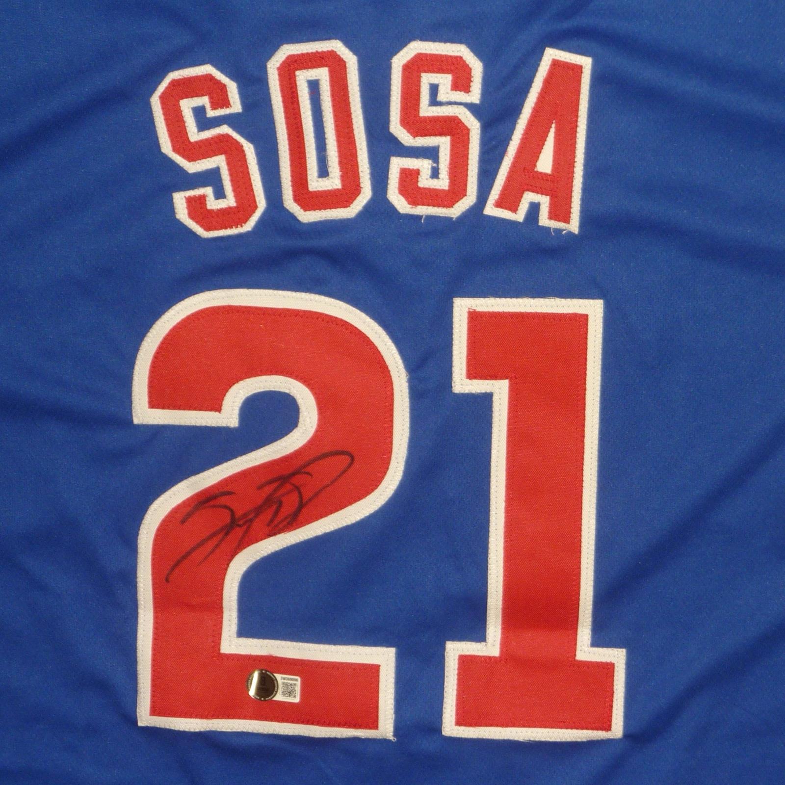 Sammy Sosa Autographed Chicago (Blue #21) Custom Jersey - Beckett