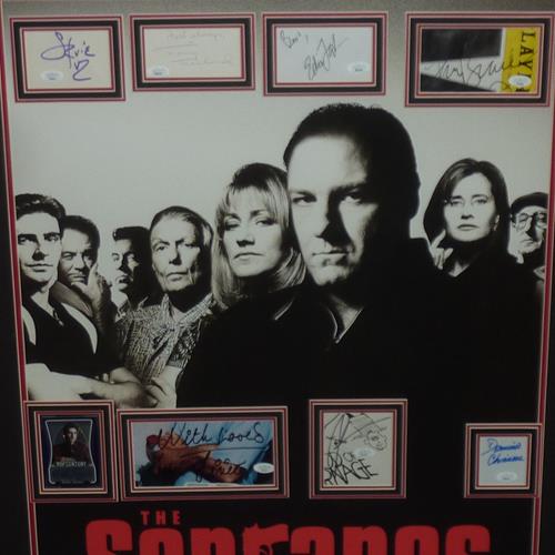 Signatures include: James Gandolfini, Michael Imperioli, Tony Sirico, Steven Van Zandt, Nancy Marchand, Edie Falco, Lorraine Bracco, and Dominic Chianese.Β Β