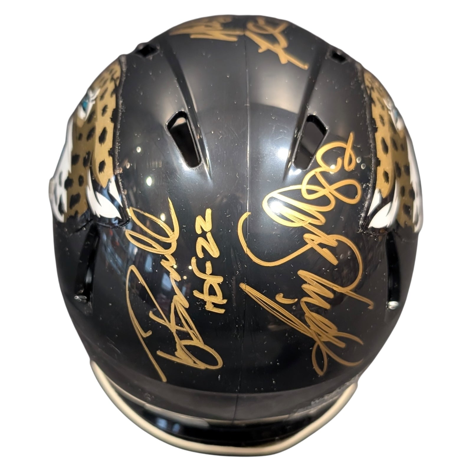 Experience the pride of the Jacksonville Jaguars with this autographed mini helmet signed by legends Tony Boselli, Mark Brunell, Jimmy Smith, and Fred Taylor. Show your support for your team with this unique collector's item. Own a piece of history and add this helmet to your collection today! Each signature is witnessed by a member of our staff or comes out of a private signing.