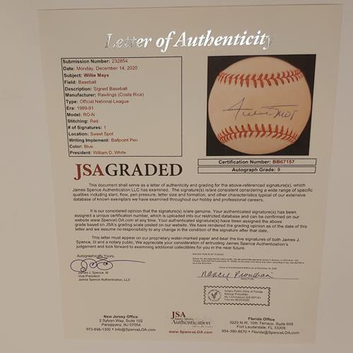 Willie Mays Autographed MLB Baseball - JSA Letter