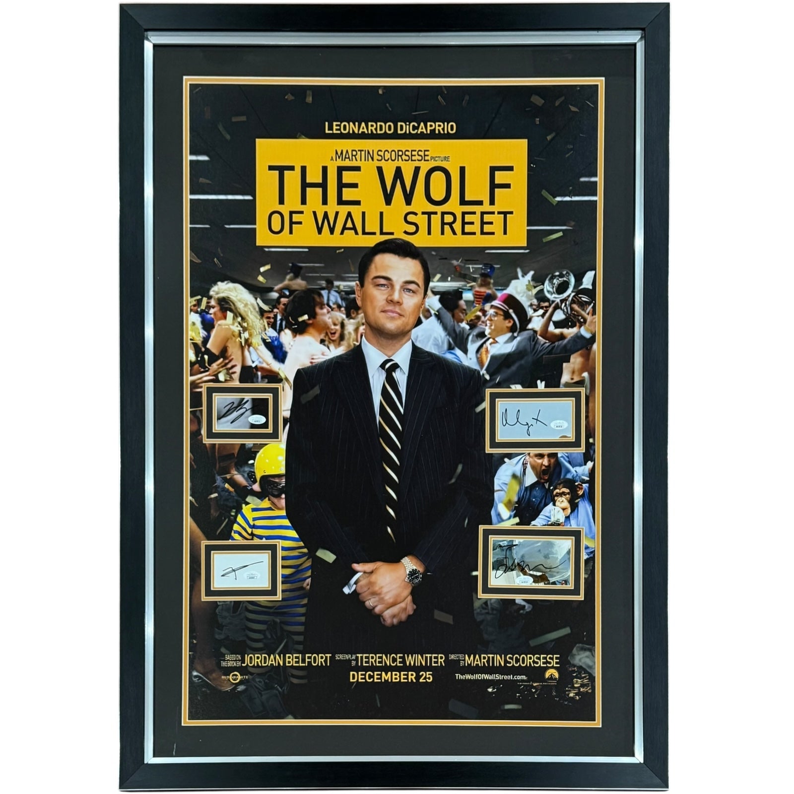 Wolf of Wall Street Full-Size Movie Poster Deluxe Framed with 4 Cast Autographs - JSA